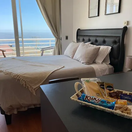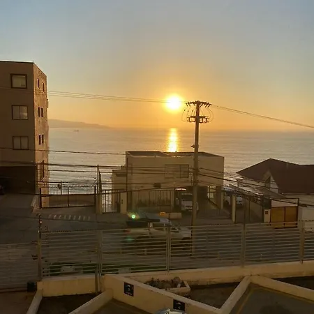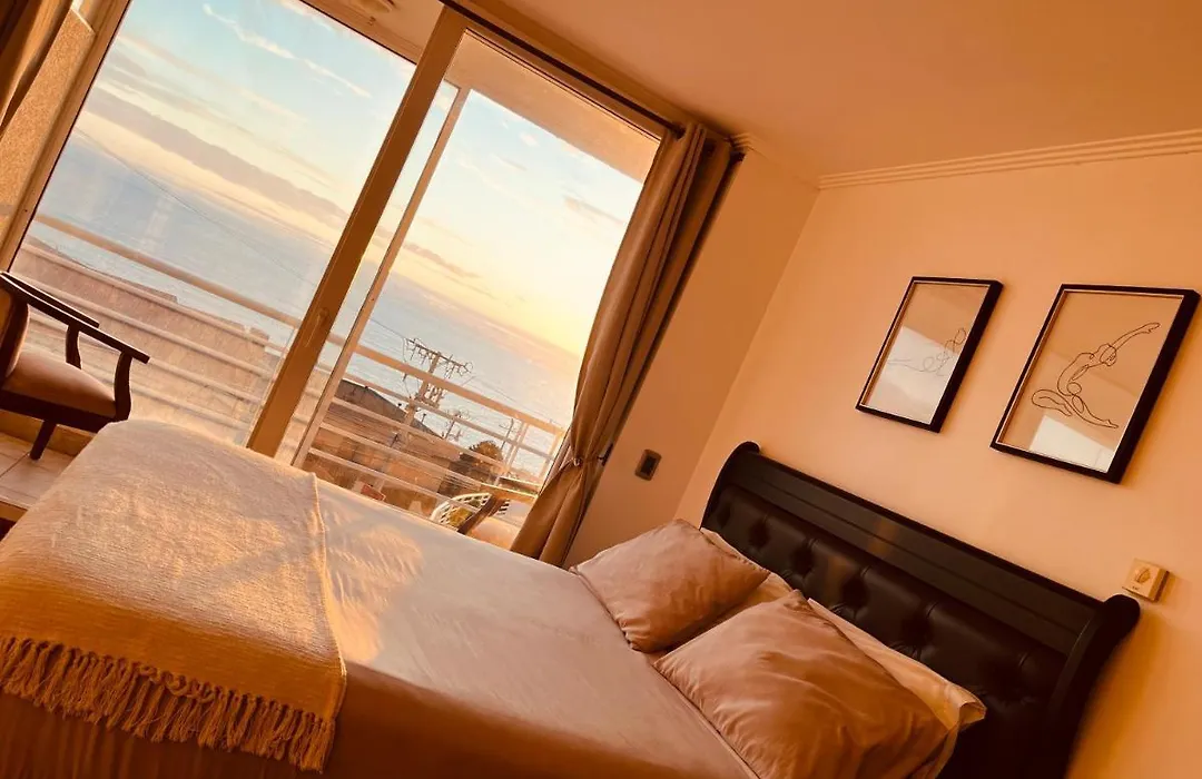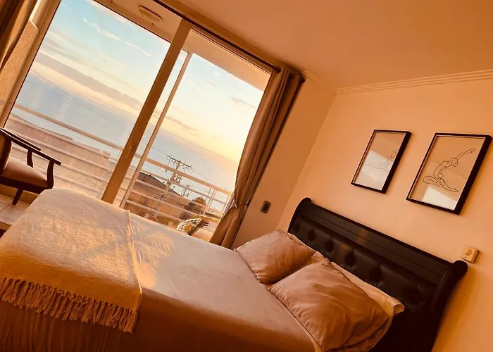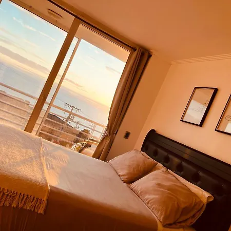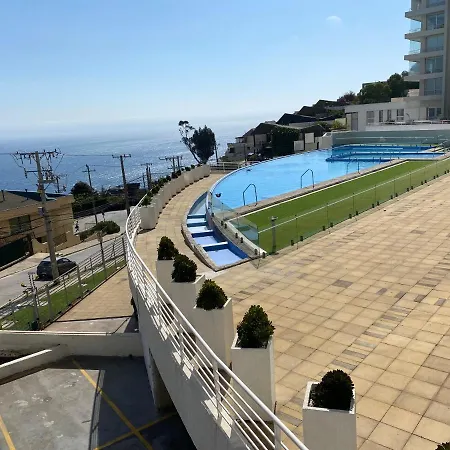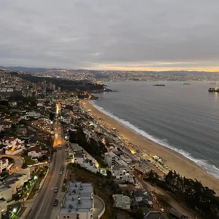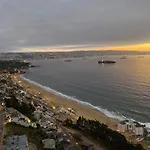 The beachfront Departamento Studio Con Exquisita Vista Apartment Vina del Mar is approximately 10 minutes' drive from Las Sirenas Square in the Renaca district and welcomes guests with a steam room and a sauna. This apartment includes a terrace that overlooks the sea and features a swimming pool.